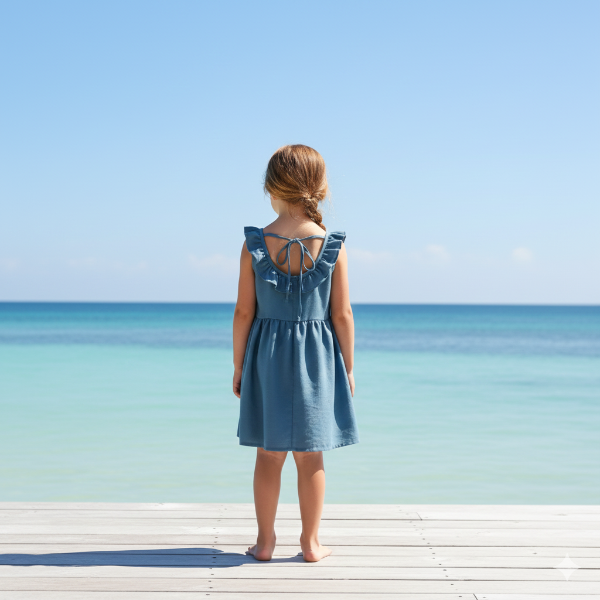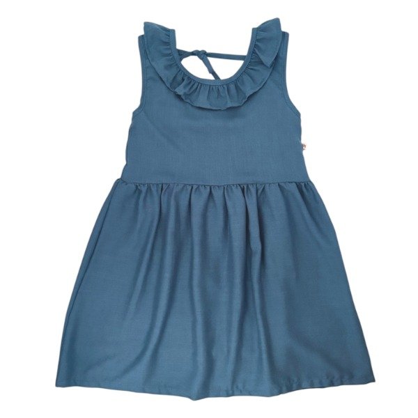 VESTIDO LINO AZUL AERO CON VOLADO