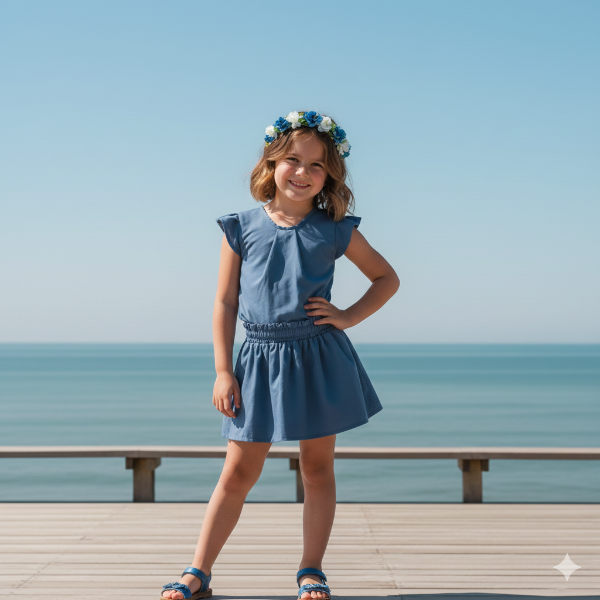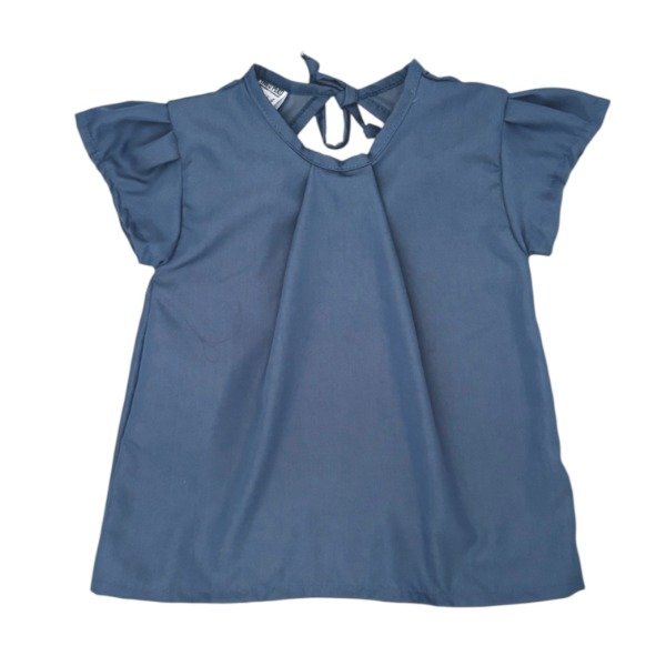 Blusa simil jean con frunce en delantera y moño en espalda