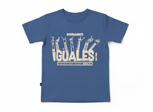 REMERA DE ALGODÓN CON ESTAMPA iguales PARA LEER CON BRAILLE y lengua de señas