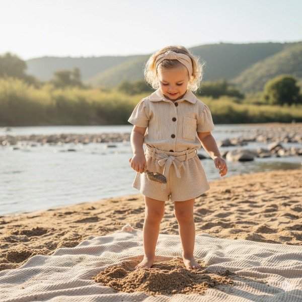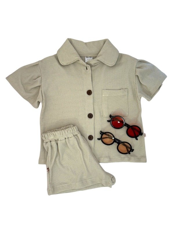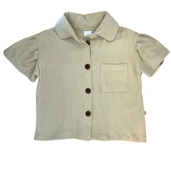 Chaqueta de panal de algodón natural, con botones, manga con frunce