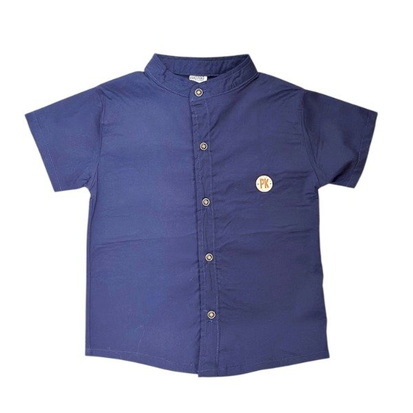 CAMISA DE POPLIN DE ALGODÓN AZUL MARINO CON BOTONES EN COLOR CHOCOLATE
